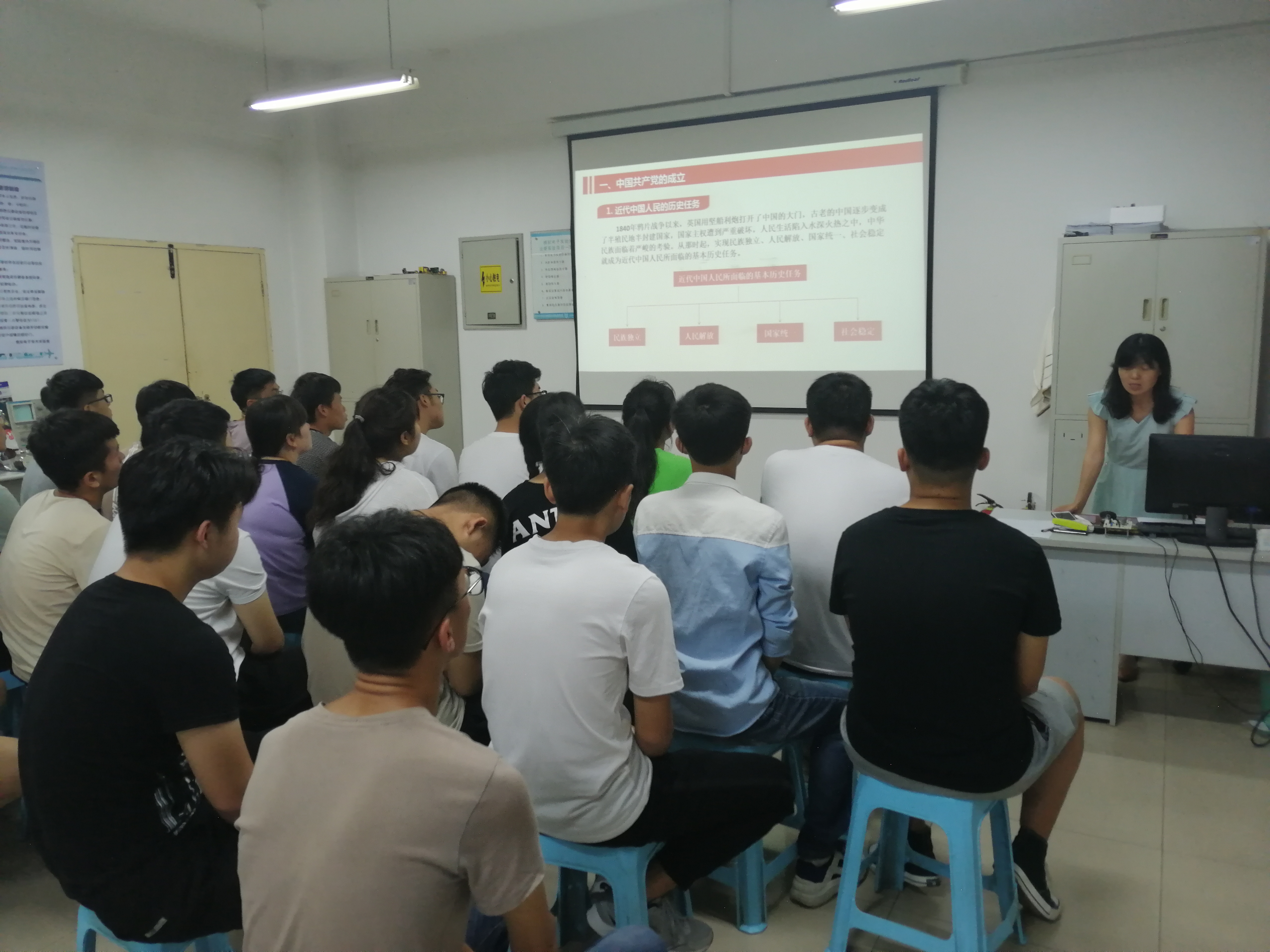 为深入学习贯彻党的十九大精神和习近平新时代中国特色社会主义思想,号召分院全体员工积极学习党的理论知识,突出党员先锋模范作用,增强新时代老员工的使命感和责任感。电子工程公司党总支于2019年6月10日晚自习期间组织全体教师党员开展“教师党员进班级上党课”活动 。