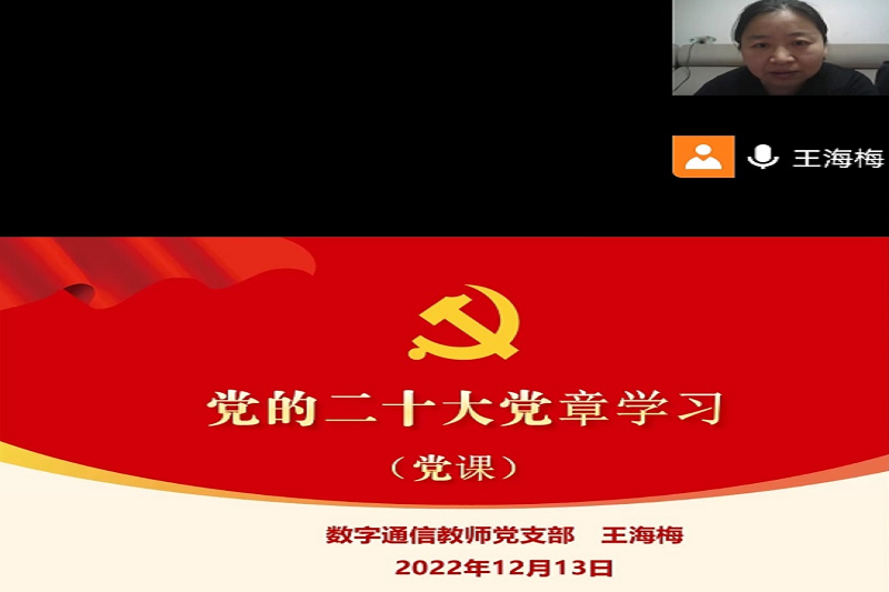 为掀起全面学习宣传贯彻党的二十大精神热潮,落实“为党育人、为国育才”的重大要求,切实推动各项工作助力学院高质量发展,12月13日下午,数字通信教师党支部书记王海梅为支部全体党员教师讲授题为“党的二十大党章学习”的专题党课。