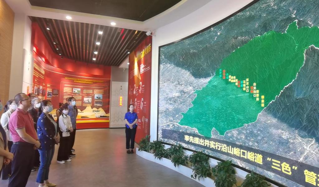 该中心位于鄠邑区太平峪口,包括西安市鄠邑区秦岭保护总站、秦岭违建警示教育中心、秦岭保护智慧管控中心、秦岭生态保护研究中心。该中心是落实习近平总书记来陕考察重要讲话精神、牢记大教训、保护大秦岭的总平台。讲解员分别从秦岭之诫、秦岭之殇、秦岭之治、以案示警和大美秦岭五个部分做了详细讲解。随后,在讲解员的带领下参观了秦岭保护智慧管控中心,沉浸式感受依托12345网络化手段,实现天地空全方位管护秦岭。最后,全体党员在党旗下重温入党誓词。