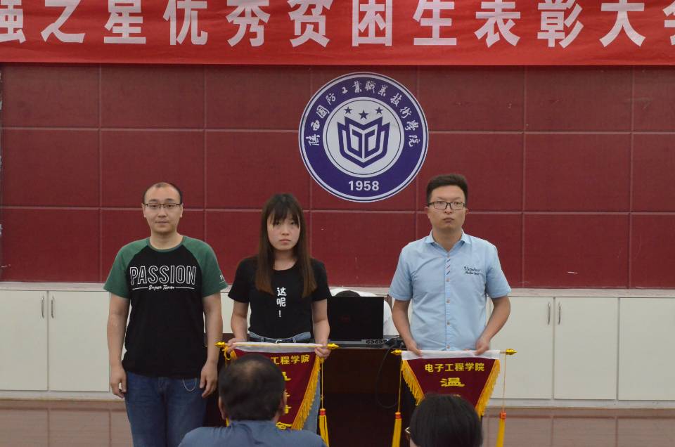 接下来我们分院表彰了自强之星、优秀贫困生、勤工助学优秀员工等13名同学,以及在电子工程学院举办的文明、温馨、三节宿舍比赛中获奖的模范宿舍。受表彰的员工代表讲话,表示要以更加饱满的热情,更加昂扬的斗志,更加优异的成绩,谱写更加辉煌、更加灿烂的新篇章。最后电子工程公司党总支书记张双琦对本次大会进行点评和总结,肯定了2018-2019学年所取得的成绩,详细分析了不足,希望电子工程学院全体同学,以受表彰的同学为榜样,树立远大的理想,明确奋斗目标,踏踏实实学习。