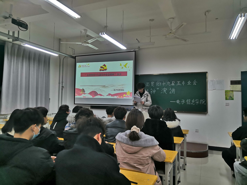 此次宣讲活动,通过主题班会,主题演讲,主题团日活动的形式得以开展。紧扣学习贯彻“十九届五中全会精神”主题,引领同学们,认真学习十九届五中全会精神,并承诺在员工与生活中积极贯彻党的十九届五中全会精神。只争朝夕,不负韶华,积极投身新征程,展现新作为,为全面建设社会主义现代化国家贡献自己力量。